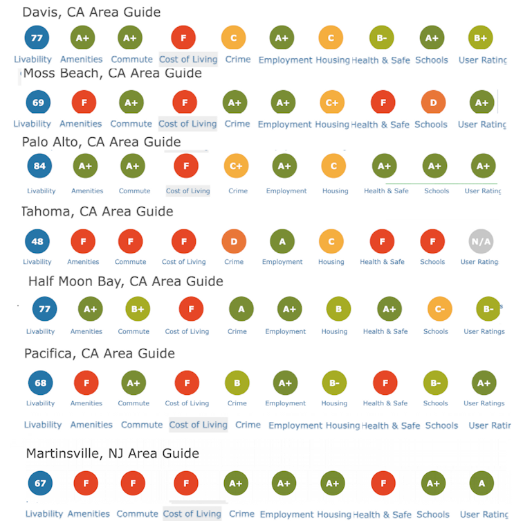 | Place | Livability | 2024 median property Value | 2024 median household ncome |